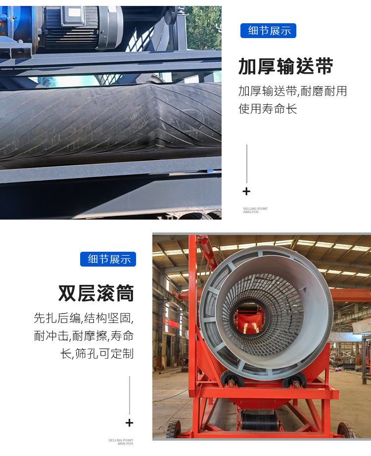 大型可移動式雙層無軸滾筒篩大型沙場礦場煤炭礦石沙子篩分機篩石機