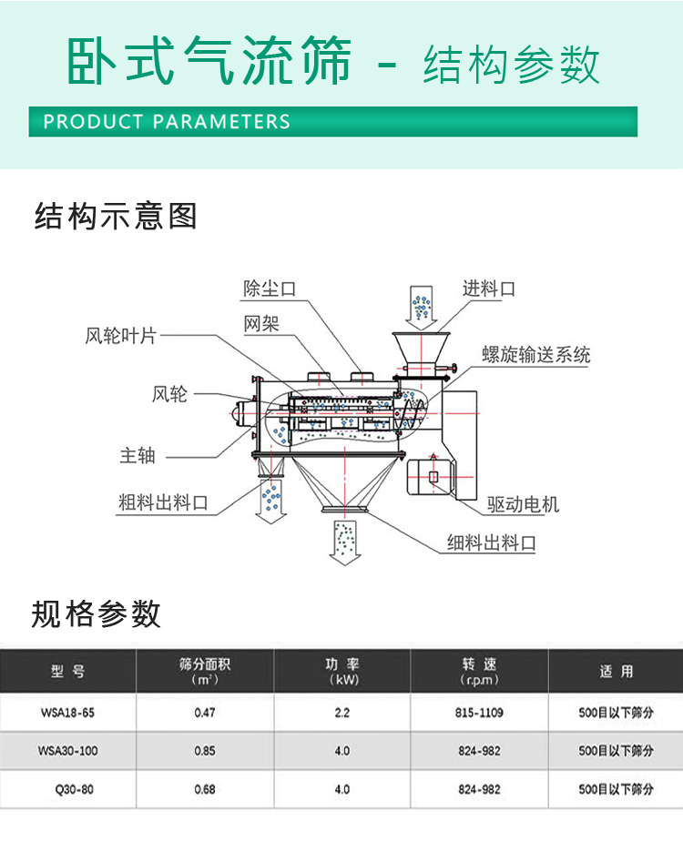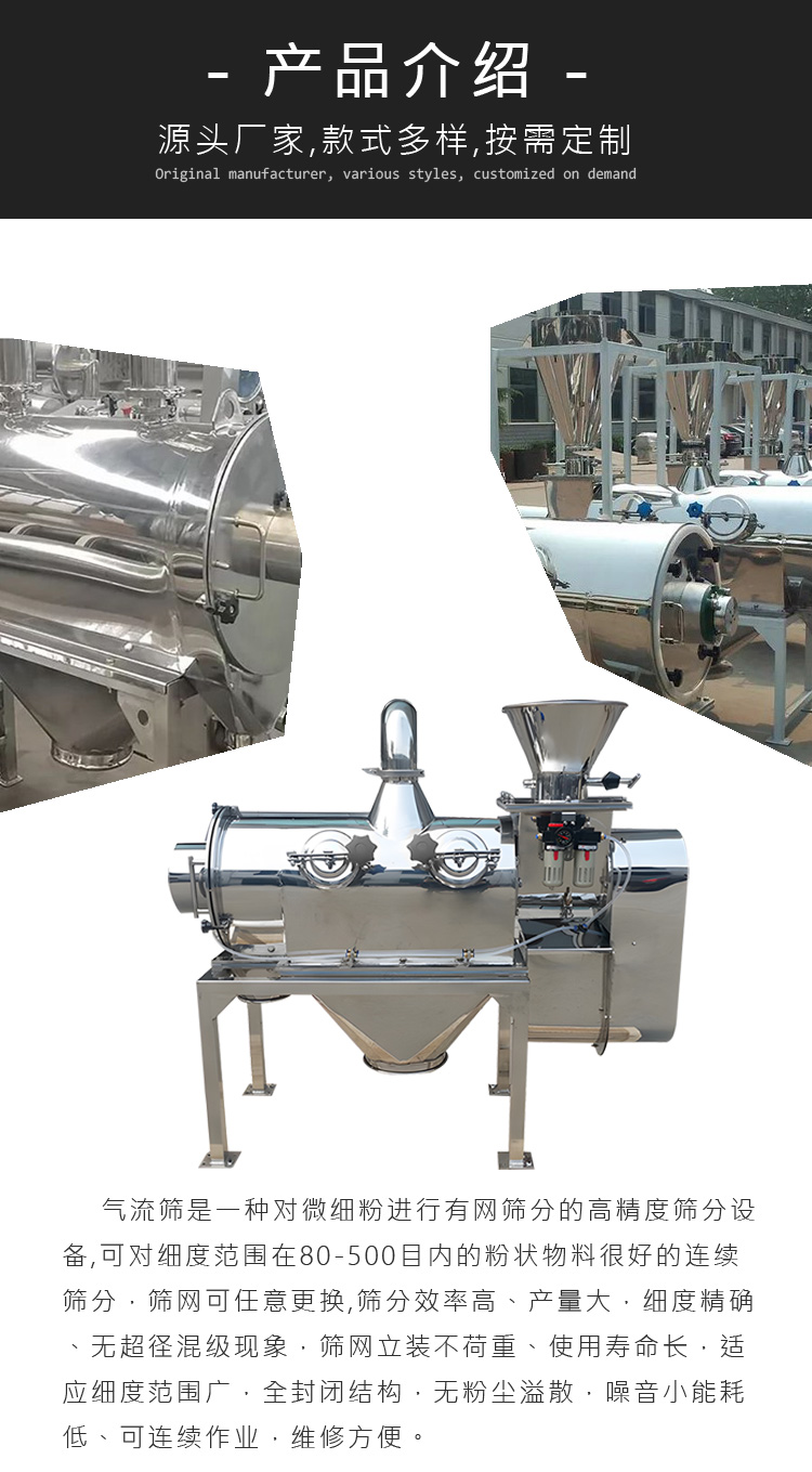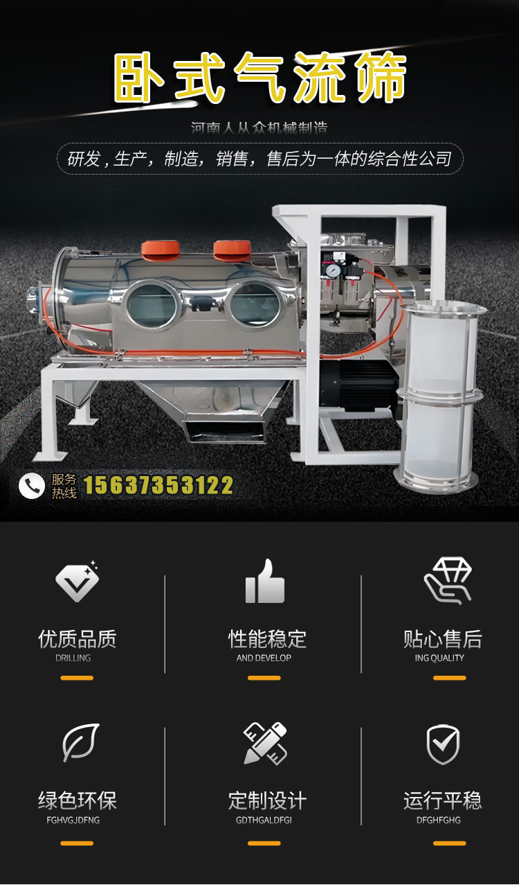 臥式氣流篩是一種常見的篩分設備,用于對粉末和顆粒物料進行分級和篩分的工藝。它采用氣流作為主要篩分力,通過氣流的作用將物料進行分離和分類。