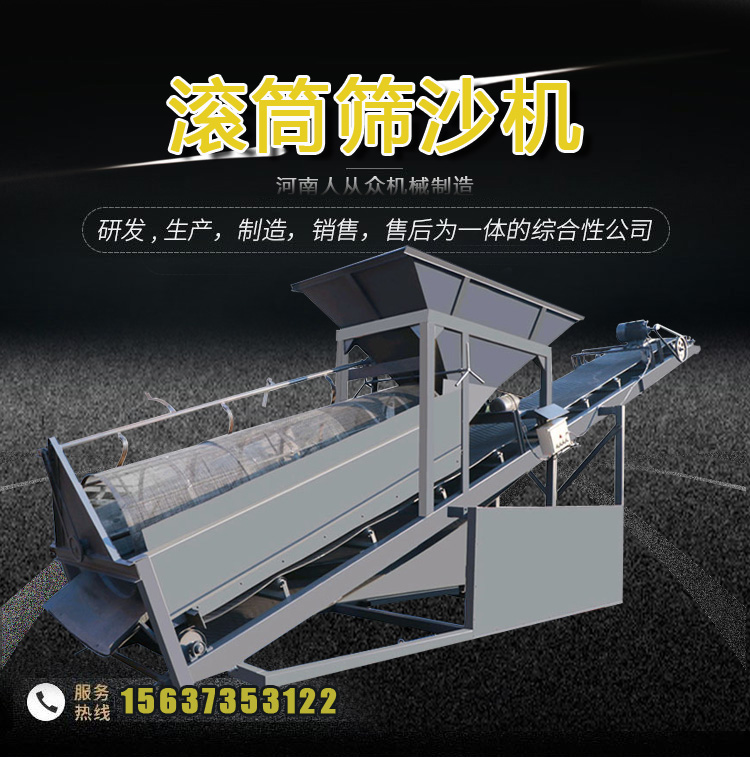 大型礦用滾筒篩與地面整體呈一定夾角的傾斜狀態。篩分滾筒以一定速度旋轉,物料通過篩分滾筒根據不同顆粒大小從上到下分離。滾筒篩的滾筒一般分為幾個部分,可根據具體情況確定。篩孔從小到大排列,每段篩孔直徑相同。
