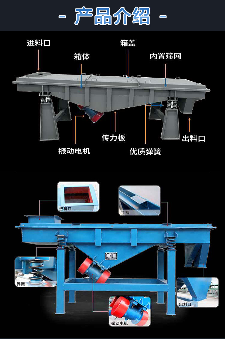 直線振動篩是利用振動電機使物料在篩網(wǎng)上做定向拋物線運動,通過多層篩網(wǎng)可產(chǎn)生不同規(guī)格的物料,具有高產(chǎn)低耗、自動卸料等特點,適合流水線作業(yè)。