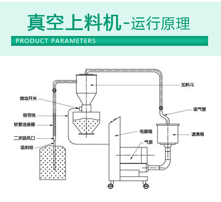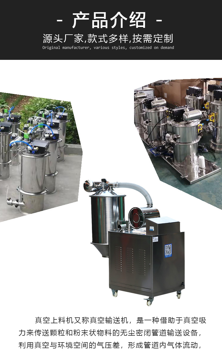 真空輸送機又叫真空上料機,由于其管道密封的輸送方式,可以消除粉塵對環境的污染;由于采用管道輸送,占用空間小,不受長距離和短距離的限制,是大多數粉末材料的首選。